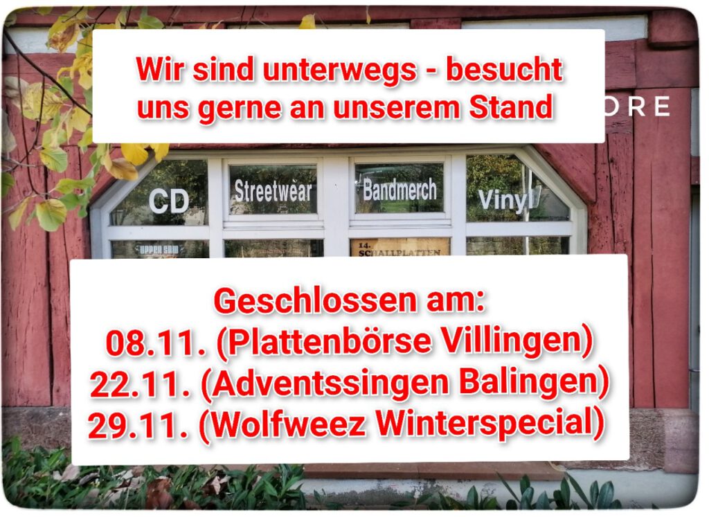 Am Samstag 08.11.25 sind wir mit einem Stand bei der 14. Schallplatten- und Musikbörse in Villingen (Klosterhof). Daher bleibt unser Shop an diesem Tag geschlossen! Kommt rum zum Stöbern!